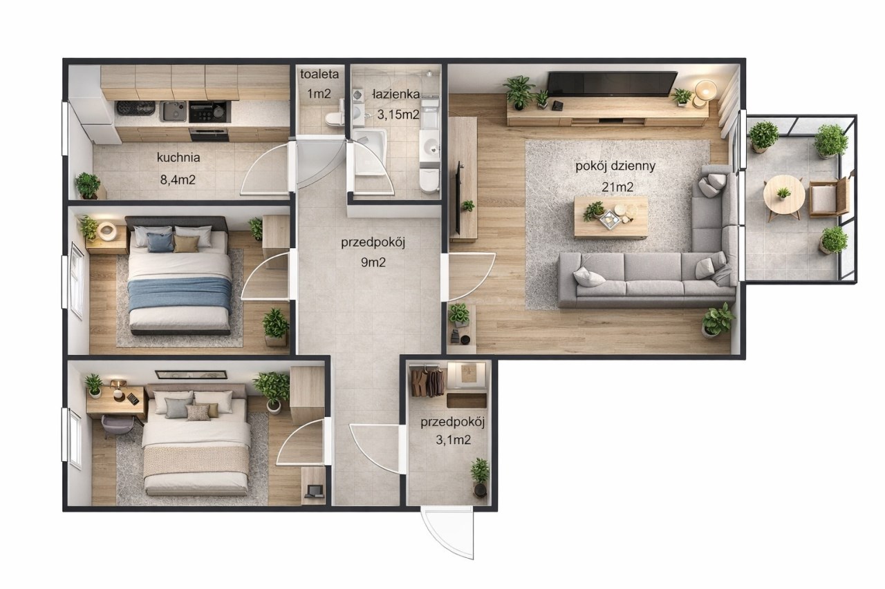 Na sprzedaż przestronne, jasne i niezwykle funkcjonalne mieszkanie 3-pokojowe o powierzchni użytkowej 63 m², które od pierwszego wejścia daje poczucie komfortu, przestrzeni i wygody codziennego życia.