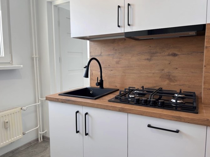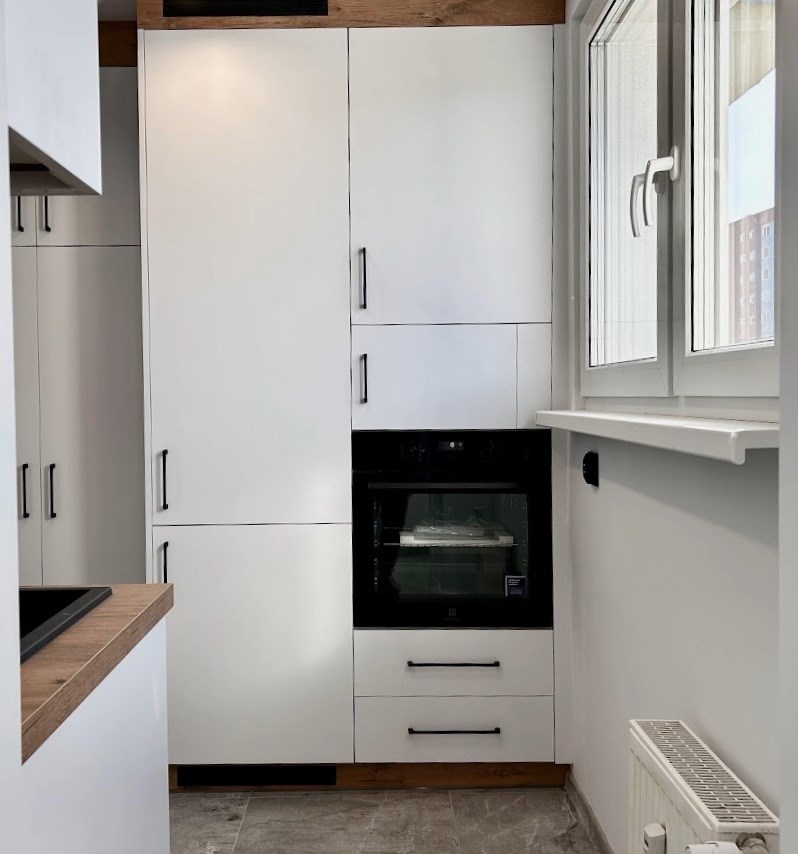 Kuchnia wyposażona jest w nową zabudowę meblową oraz