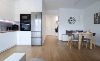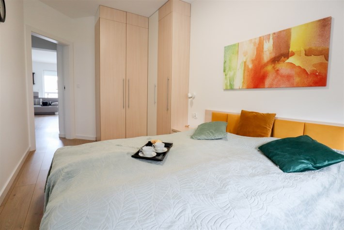 przestronny salon z nowoczesnym aneksem kuchennym (24 m²) zachwyca jasnością i przestrzenią, a duże okna prowadzą na imponujący balkon (9 m²) o zachodniej ekspozycji, idealny na popołudniowy odpoczynek w promieniach słońca. Sypialnia (12 m²) została wyposażona w praktyczne szafy w zabudowie, które dodają elegancji i funkcjonalności, a piękna łazienka urządzona w nowoczesnym stylu oferuje nie tylko komfort, ale i wiele sprytnie ukrytych schowków. Całość dopełnia ustawny przedpokój.