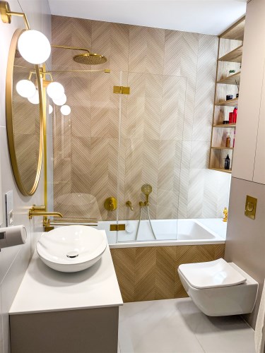 Łazienka w nowoczesnym stylu, posiada wannę z funkcją prysznicową oraz armaturę łazienkową marki Villeroy & Boch oraz Grohe