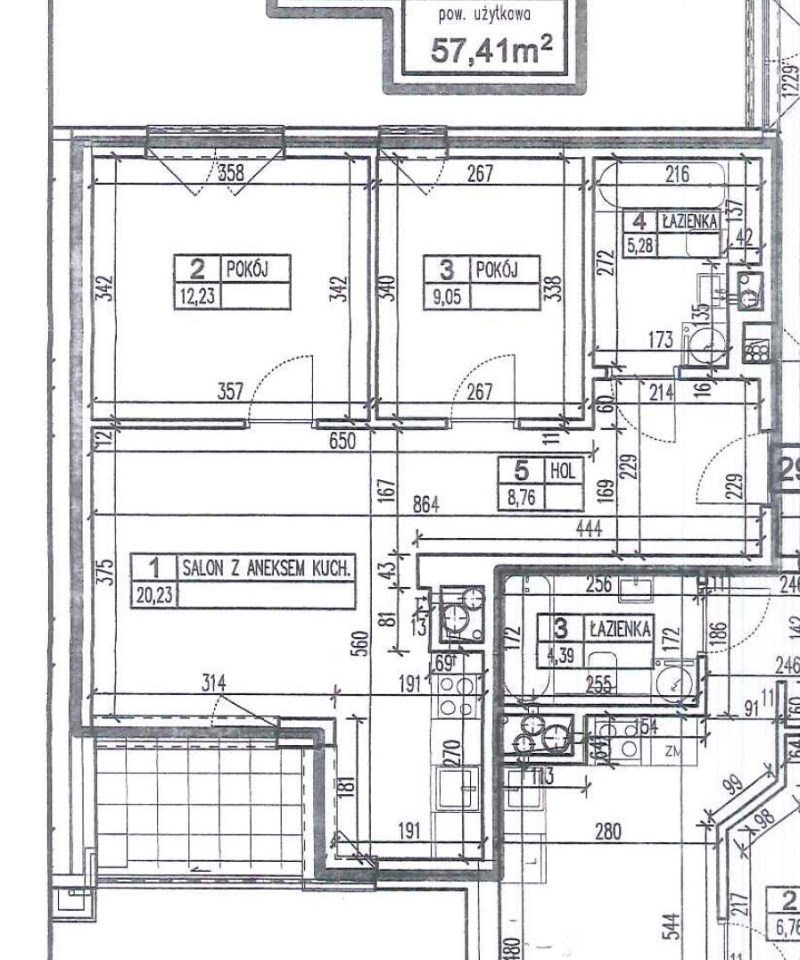 salon z aneksem kuchennym - 20,23m