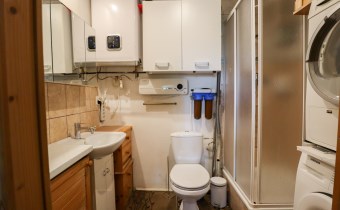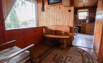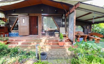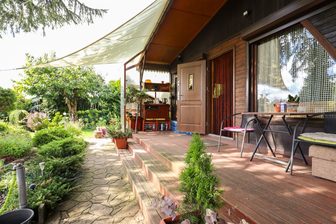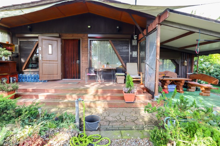 Na działce znajduje się domek o powierzchni 35 m² z przestronnym tarasem 13,5 m² – idealny, by latem cieszyć się długimi wieczorami w gronie rodziny i przyjaciół. Domek został przygotowany również do całorocznego zamieszkania – wyposażony w panele grzewcze, zapewnia komfort także w chłodniejsze dni.