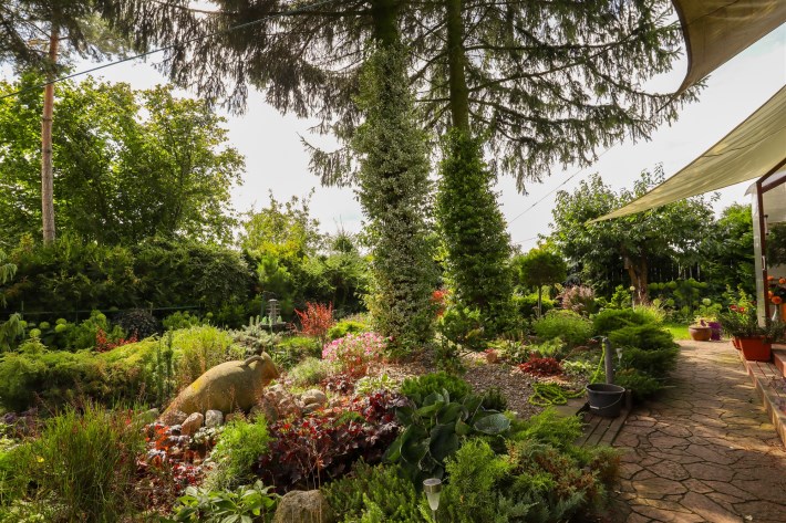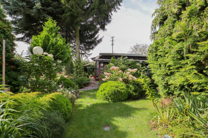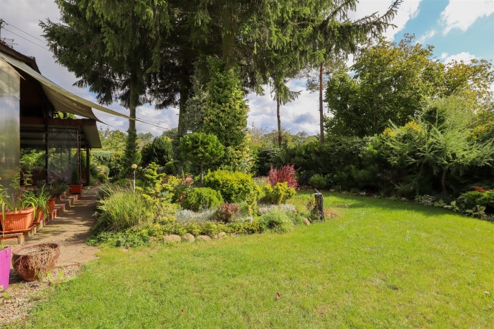Działka jest w pełni zagospodarowana i urządzona z ogromnym sercem – zadbane rabaty, soczysta zieleń i harmonijnie dobrane nasadzenia tworzą wyjątkową przestrzeń, która koi zmysły. To miejsce, w którym każdy znajdzie spokój, wytchnienie i prawdziwy kontakt z naturą.