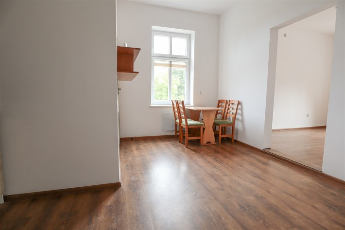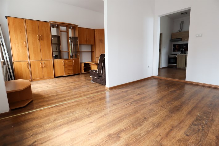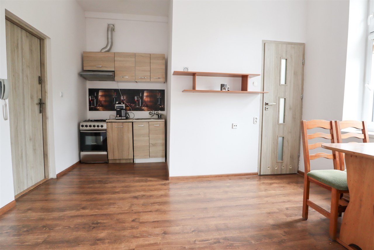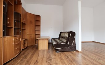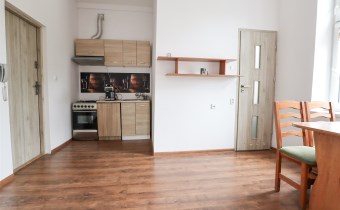 Lokal składa się z przestronnego pokoju przedzielonego ścianką (dzięki czemu powstały dwa funkcjonalne pomieszczenia), aneksu kuchennego oraz łazienki.
