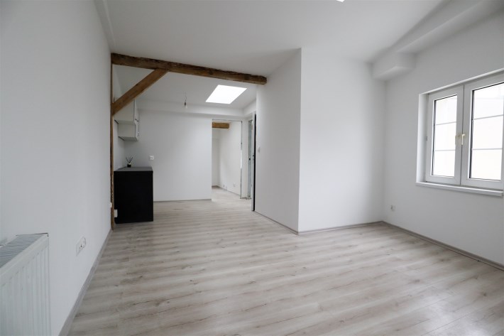 Mieszkanie składa się z przestronnego salonu z aneksem kuchennym, który zapewnia doskonałe warunki do codziennego życia oraz dwóch osobnych sypialni. Skosy dodają mu