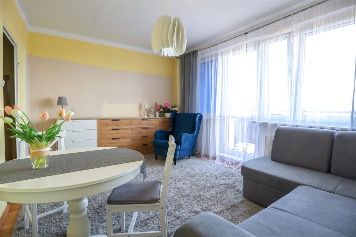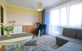 przestronny salon o powierzchni 16 m² z wyjściem na loggię od strony wschodniej. Poza salonem, w mieszkaniu znajdują się także dwa ustawnę pokoje, idealne na sypialnię lub pokoje dla dzieci. Osobna, jasna kuchnia stanowi dodatkowy atut tej nieruchomości.