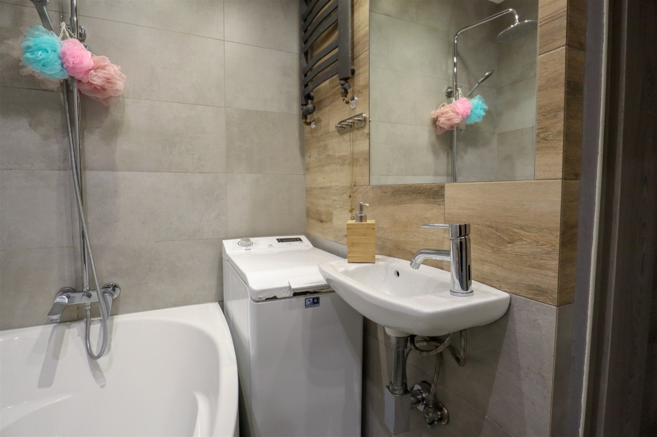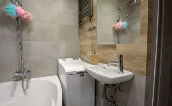 Relaks po ciężkim dniu zapewnia łazienka z narożną wanną. Dodatkowym atutem jest osobne WC oraz przestronny przedpokój. Całe mieszkanie przeszło gruntowny remont 4 lata temu, dzięki czemu prezentuje się nowocześnie, ale jednocześnie ciepło.