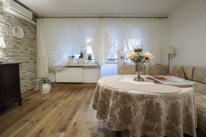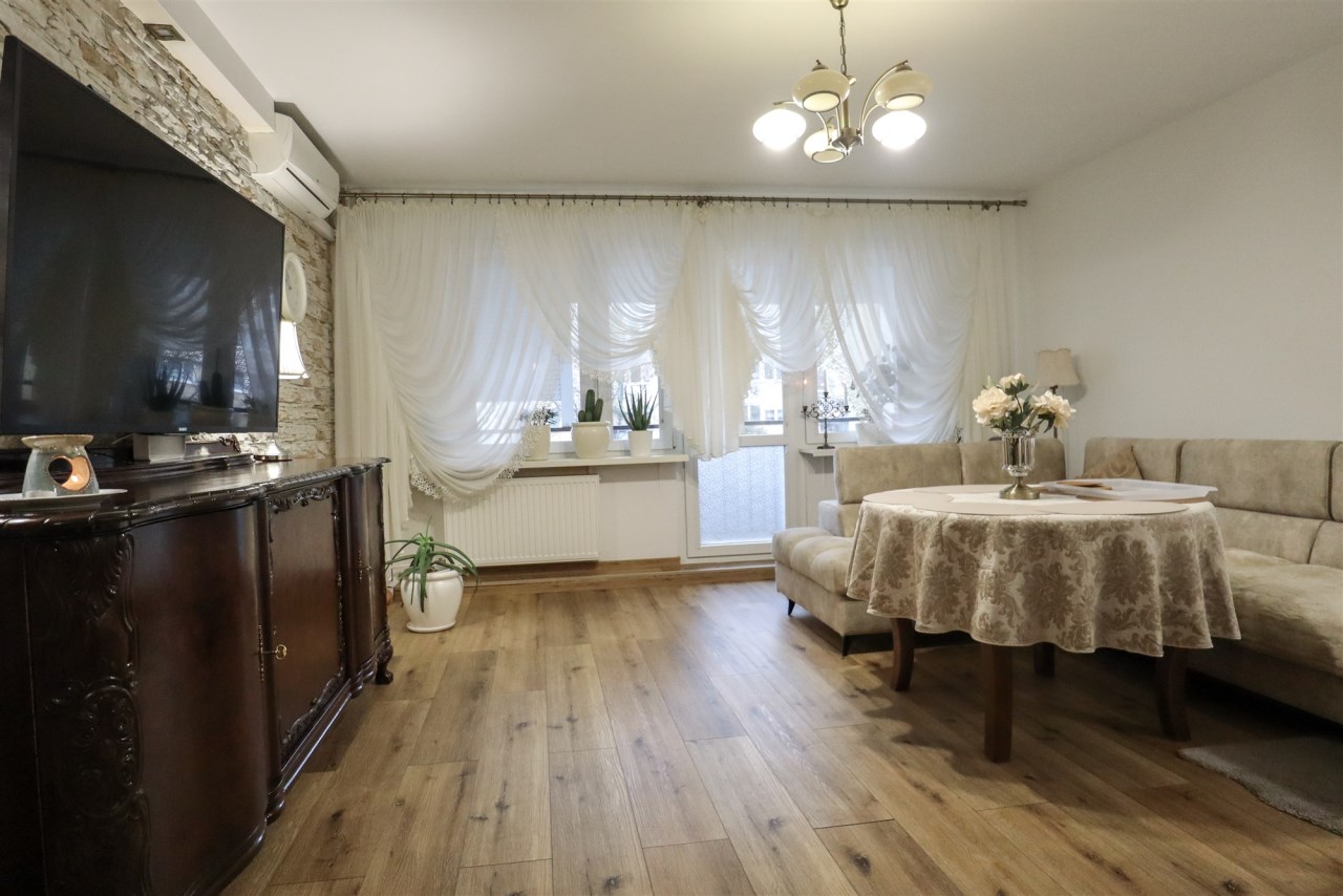 Wchodzisz i mieszkasz. Bez remontów, bez niespodzianek, bez kosztów. Kilka lat temu mieszkanie przeszło remont wraz z wymianą instalacji, dzięki czemu wnętrze jest świeże i funkcjonalne. Przestronny salon 22 m² z wyjściem na słoneczną loggię od południa to serce mieszkania — a gdy lato daje się we znaki, komfort zapewnia klimatyzacja. Dwie ustawne sypialnie (10,3 m² i 8 m²) dają prywatność, spokój i swobodę aranżacji. Osobna kuchnia z zabudową, łazienka i oddzielne WC to układ, którego dziś po prostu się szuka.
