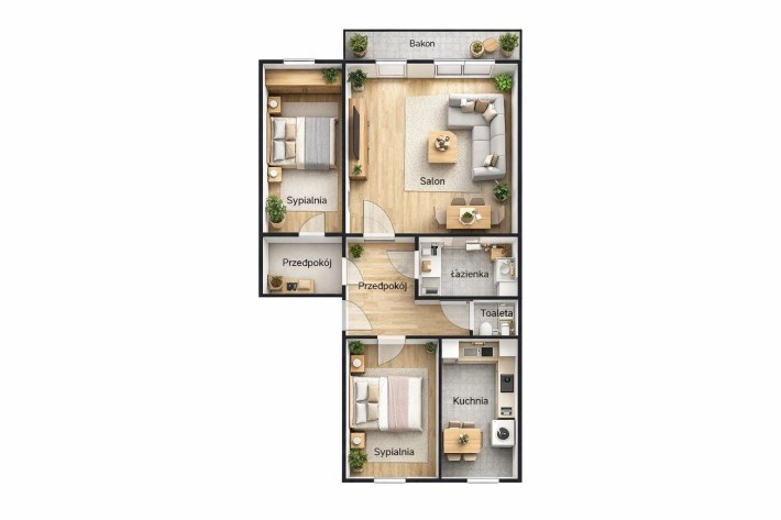 Na sprzedaż 63,4 m² świetnie zaprojektowanej przestrzeni przy ul. Zurna — lokalizacja, w której wszystko masz pod ręką: szkoły, przedszkola, sklepy, rynek, tramwaj i autobus, a jednocześnie ciszę i wygodę codziennego życia. Parter, więc żadnych schodów, dźwigania zakupów czy wózka — czysta wygoda od pierwszego dnia.