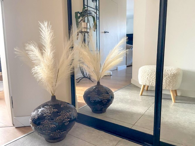 Apartament oferuje również wygodną sypialnię główną o powierzchni 10,16 m², w której znalazła swoje miejsce elegancka przeszklona szafa oraz stylowa ściana, stwarzająca niesamowity klimat relaksu. Druga sypialnia o pow. 7,81 m² jest wszechstronna – można ją zaaranżować na gabinet lub pokój dziecięcy, co czyni to miejsce idealnym dla każdej rodziny.