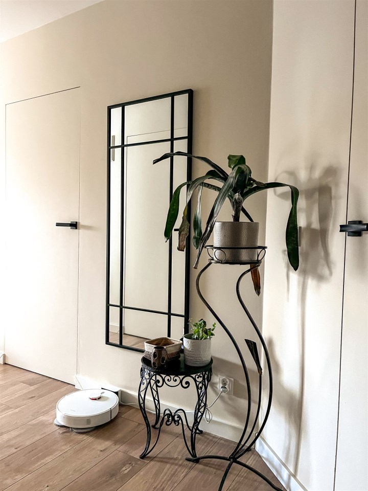 drzwi bezprzylgowe z ukrytą ościeżnicą i zamkiem magnetycznym oraz system inteligentnego zarządzania domem z możliwościami sterowania z telefonu. Ogrzewanie zapewnia piec dwufunkcyjny.